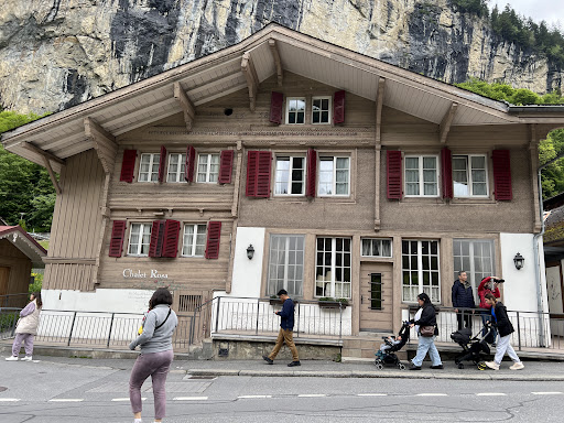 On the positive side, the location was fine, between the train station and Staubbach Falls (thus a bit of a walk from/to the train, but I found it more "central" for our purposes). The hotel is right on the street, close to an intersection, and close to the town pub, so there is street noise. I'm hearing impaired so that didn't bother me, but be forewarned. The people are nice. We arrived around noon, well before check-in time, but the very cheerful and pleasant young UK girl who was there said our room was ready, and let us check in early, which we really appreciated. It is thanks to her that I give Chalet Rosa a 3* rather than 1* or 2*. I hope the management improves the breakfast for...