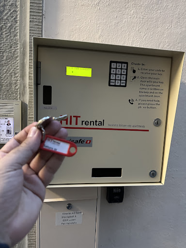 Superb location facing the chapel bridge. It is located about 7 min walk from Lucerne train station via Rathaussteg bridge. I followed the direction provided by Google map, it brought me to the Brandgassli alley to go to the back alley where the HITrental main entrance located (with a room key dispenser machine). The challenge was to go through the uneven Unter der Egg stone-paved street and the staircase at Brandgassli alley with big luggages. So, my advice is to use the front entrance located beside the Restaurant Schiff to use the lift and go to floor zero (0) when you are carrying luggage bag and go to the back alley HITrental entrance collect your room key through the key dispenser.