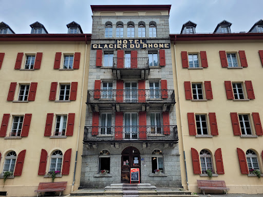 The Hotel Glacier du Rhône in Gletsch is a old historic Hotel, open seasonally in summer from late June to late September at the crossroads of the Grimsel and Furka summit roads and dates back to the mid 1800 when travelers by foot or horse carriage needed a place to rest and recover.||Today it offers the modern traveler still a cozy place to rest and recover from a day hiking or biking out in the fantastic and picturesque mountains and glaciers of this rural area.||The Hotel is still in its very traditional style with classic furniture but offers the basics of today’s minimal needs (toilets, showers, electricity, heating) mobile phone reception is available, but don’t expect WiFi or TV, but read some of the books and magazines available in the study’s library or relax by the wood fireplace. Some of the rooms have their own private bathroom, others have shared facilities. The main focus point is the large dining room where the guest can enjoy a fantastic very well maintained breakfast buffet with lots of local products like bread, diary, meat and delicious müesli , cereals and a selection of hot and cold drinks.||Dinner is also served in the dining room, either a la carte or as a set menu with a variety of local wines from the Wallis. Everything is served and taken care of by the very friendly and skilled staff and your hosts, the...