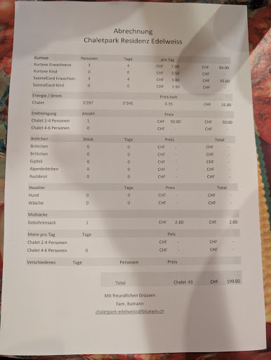 Read moreWij verbleven 5 dagen. Vanuit Italië hebben wij de eigenaresse netjes gebeld hoe laat wij ongeveer aankwamen. Ze spreekt overigens enkel Duits. Telefonisch werd ik al niet erg vriendelijk te woord gestaan. Ze moest op ons wachten. 18:30 kwamen we aan. De eigenaresse vroeg niet hoe de reis was, was extreem onvriendelijk en vroeg ons een borg van 200 franc te betalen. Ik pakte mijn pas, maar dat was niet mogelijk. Alleen contant. Dat stond nergens beschreven in de reisbescheiden. Ik had 150 euro contant op zak. Ze stond er op dat ik de rest ging pinnen in een dorp verderop. Ik gaf aan, het staat nergens hè? Dat was ons probleem vond de eigenaresse, ik moest een pinautomaat zoeken, anders geen sleutel. Ik heb gepind en haar 150 euro en 50 franc gegeven. Bij het uitchecken moesten we 230 franc betalen. Het is geen borg, er gaan allerlei kosten vanaf, dus uiteindelijk bijbetalen. Ik gaf aan, ik pin wel even 30 Franc. Ik was al onderweg toen ze aan mijn vrouw aangaf, dat ze het hele bedrag in Francs wilden hebben. Waarom is een compleet raadsel want overal kun je met beide valuta betalen. Ik moest opnieuw terug. De eigenaresse is onredelijk, niet klantvriendelijk en zorgt voor een hele nare sfeer. De huisjes zijn eenvoudig, maar ok. Locatie is ook ok, maar van deze Résidence is echt...