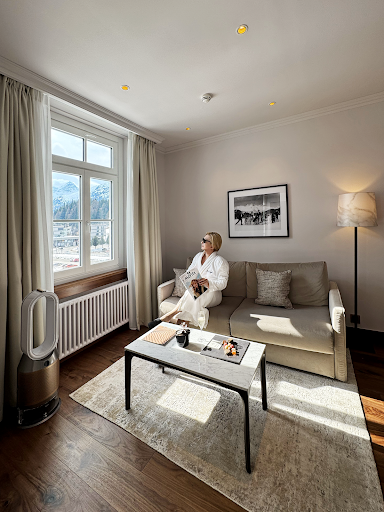 Bad: Our shower knob broke and we were unable to have properly hot showers - it was never fixed (or explained) despite reporting the issue. I ended up crouching in the bath on the second morning rather than freezing. We were told at check-in that we had 80CHF to use as credit at the Lobby Bar but we were embarrassed to be turned away. Apparently credit can normally be used at their other restaurant which was closed so we had to go to Les Saisons again. We could use 70CHF credit against the a la carte menu but no one explained that the prior night. It seems to be a Swiss thing but don't expect a proper, full sized quilt - instead you have to make do with two even if the bed is set up as a king. Housekeeping kept moving things to where they preferred them which seems odd (if I've moved the tissues to the bedside table it's because they are needed there). They also disturbed us getting ready in the morning, requesting to make up the room before we had even gone to breakfast. No kettle and tea or iron in the room and provided on request only. For a hotel based in Switzerland to only serve bottled water, which we all know is bad for the environment, is ludicrous. At 10CHF when the tap water is the best in the world is just ridiculous. The blue lighting around the light switches was too bright to sleep with so we ended up having to find ways to cover them up.