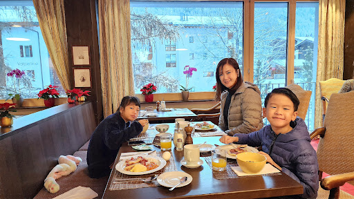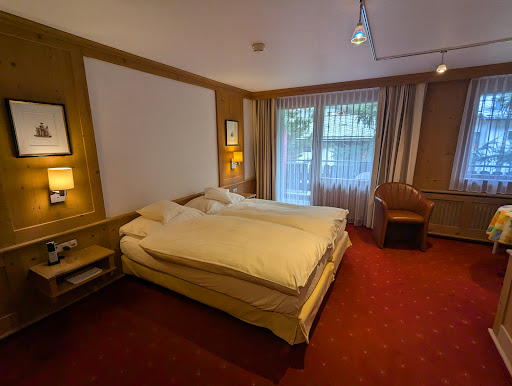 Read moreI had an amazing stay here with my family. The location is perfect in that it is close to the train station and town but away enough that it is quiet and not super congested. Our room was amazing with a great view from the balcony. I recommend booking a room with a view of the Matterhorn because in the morning on a clear day you can see the sun shine on the top. The Kitchenette was also very helpful especially because the Denner supermarket is steps away. The hotel staff were helpful and the breakfast buffet was great with a variety of cheeses offered. We also went to the pool and sauna and it was nice that they provided robes, towels, and slippers, for each person included in the room. The pool was amazing and the sauna/steam room was great too. We also realized that you are expected to go to the sauna naked even though it is mixed genders which surprised us! All around an amazing experience which made us really regret not staying in...