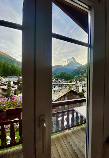 Read moreA gorgeous small hotel/bed and breakfast in Zermatt. Fantastic Matterhorn views from your window/patio doors. The Matterhorn suite at level 4 (don’t worry, there’s a lift) has one of the best views in town, at the comfort of your patio. The beds are clean and comfy. The second bedroom upstairs has a low ceiling so tall people beware, but it’s a double bed as well. And a sitting area too. The bathroom is large and well appointed. There are tea and coffee facilities downstairs as well as in the room. Drinks (alcoholic and non-alcoholic) available to order at the bar or on an honesty list system outside of reception hours. The spa facilities are small but gorgeous, and the pool also has Matterhorn views to enjoy at sunset. Operating hours are a bit limited though. Breakfast was good and varied. Great base to stay that’s slightly off the main thoroughfare, which I thought was nice. It’s a bit of walk from the station but pleasant enough even with luggage if you take the long way around the Main Street anyway. Overall, fantastic base to stay in. May be slightly pricier than some places in Zermatt, but probably more median range, and you can’t beat the views! Waking up to the Matterhorn or watching the sunset...