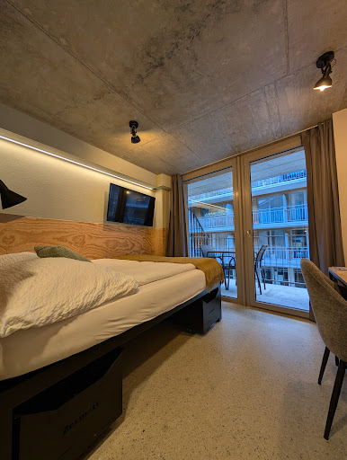 Pros: All the booking and information is provided via an online platform with a paperless entry/exit. I love this concept and more hotels should do it. Very efficient - they're tuning up some loose ends however in due course - all the check in and access will be fully online Their WIFI is amazing. Insanely high speeds - 400-500mbps. This is really good. Many switzerland hotels lack wifi or have very sub-optimal internet services. The manager was awesome - easily contactable anytime especially through whatsapp. Very friendly Well priced - Very cheap for what you get! Remember Zermatt is expensive! Brand spanking new - opened in in late 2022. Beds - comfortable They have personalised and secured lockers for ski stuff