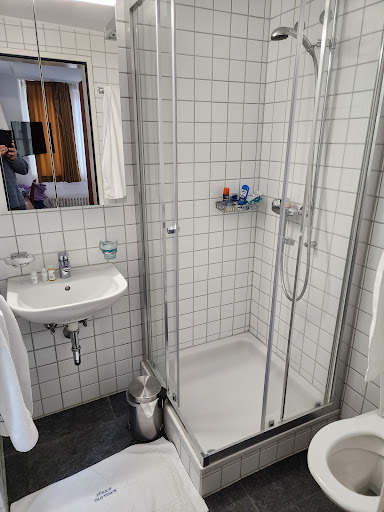This was the 1st hotel we stayed in during our 10 day vacation in Switzerland. We stayed here 2 nights. Pros: Location is great, room had air conditioning, shower had great water pressure. Cons: Mini Fridge had a half-eaten container of ice cream in the freezer, blanket for bed could be larger, outlets at bedside lamps did not work. We arrived around noon hoping to be able to check in early (I had emailed before asking if this was possible and if they could store our luggage, but never got a reply if this was an option). It was raining and unfortunately I had fallen on the slick cobblestone getting to the hotel and hurt my leg pretty badly and could not walk very well. When we got to the hotel, the person in the restaurant (there is no front desk) let us know the room would not be ready until 2 PM, but they could hold our luggage and put it in the room once it was ready. That was fine, but then told us we could not sit in the restaurant to wait. There was no one there (again it was pouring rain outside) and when my husband stated once more that I was injured, the man just spread his arms out and stated there was no where for people to wait. So, we left and sat in the burger king just down the street for about 2 hours (where a very nice man sitting across from us asked if I was OK because he saw me hobble in). When we went back at 2, our room was ready and then we were told that we were to only use the back entrance to come and go to our room. That seemed weird, but was ok as this entrance worked fine. Our last night I wanted to get a drink at the bar in the restaurant and take it up to the room. When we walked into the entrance of the restaurant a waiter asked us what we wanted and I stated we were staying there and I wanted to get a drink from the bar. Then the same gentleman who would not let us wait for our room the 1st day started shuffling us to the back where you can go through to get to your rooms stating there was wine in our fridge. I stated again I wanted a glass of wine from the bar to take up with me, and he kept saying "there is wine in your room you can drink". There was 1 couple in the restaurant at this time. I gave up at that point because I was not happy. The "wine" in the room is a bottle of Prosecco in the mini-fridge (they will charge you for) which I do not like. So, to say the least, no night cap. I would not stay at this hotel again just because of the...