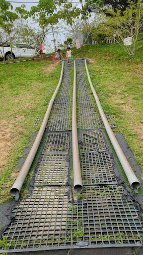 滑草道有兩道 營主還貼心準備滑草板與雪撬型的滑草板