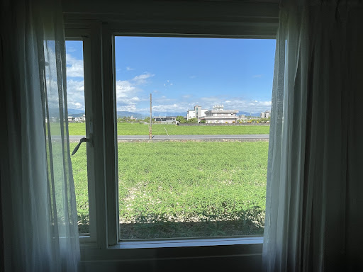 The house is surrounded by rice fields and mountains at the back. There's also a number of trees in the front and tons of plants. Super chill. Pleasant change of scenery if you're coming from Taipei. Auntie was very warm and welcoming of us (we have pets and a child). She introduced a few spots and restaurants for us to try out. Treated us to a free breakfast on the first day, too. Room is quite cozy and spacious, and you get a sweet view of the rice fields from the window. House is not far from 冬山站 and close to...