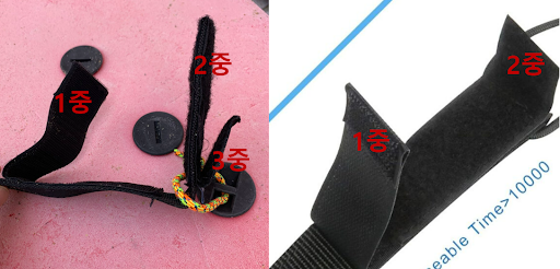 아페이 샵의 리쉬 줄 찍찍이 부분은 3중이 아니라 2중으로 되어있습니다. (아래 이미지 참조) ** 아래 이미지는 참고를 위한 사진입니다.