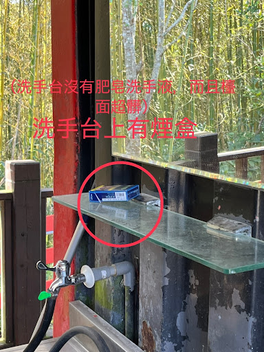 ・設施 盥洗浴廁看起來還蠻乾淨,但是廁所裡面滿滿煙味,座式馬桶上還有發現打火機(後來想拍照時被工作人員收走了)。洗手台上也有發現煙盒,而且洗手台並沒有肥皂或洗手液,對帶孩子的家長來說很不方便不友善。 btw浴室第一間聽我先生說水超小,根本邊洗邊抖,(還好小孩沒洗到那間,不然八成大人小孩一起感冒。)