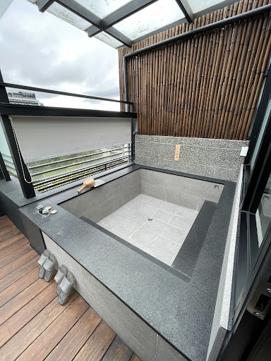 有些人提到的露天湯池隱私問題,我覺得這部分民宿做得不錯,兩面都有簾子可以放下來,除非真的非常非常怕被看到,不然我覺得隱私方面是沒問題的。 不過四腳的圓桌可能會不穩,玻璃桌面也不是固定的,住客要小心碰到壓到桌面發生危險的事。