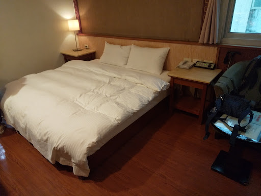 We stayed at this hotel for just one night. But it was overall a good experience.||||First, the location is just 5 minutes walk from the most bustling Tangweigou hot spring park, and so it is close to major travel and eating places.||||Second, the room size was good enough for the two of us with enough space to put our luggage. (compared with an earlier hot spring hotel we stayed in)||||Third, the price of the room at NT1500 can be considered budget to mid-range. Although the building facade and rooms looks less than modern and a bit old, we had a comfortable and cosy stay with our basic necessities met.||||Breakfast is served direct to the room as there is no dining area in the building. Water dispenser is not available on each of the 6 floors, but only on the third floor, where there is hot, warm and cold water available. ||||A great plus point is that this hotel provides free rental of bicycles, although you need to book the bicycles in advance before your stay. Hence, suggestion to cycling enthusiasts to borrow the bicycles and do a simple cycling trip around Jiaoxi town in the morning, or even to the Paoma Historical Trail which is 10-12 minutes away on the bicycle.||||Recommended for those who are on a leaner budget and who want a convenient stay close to the...