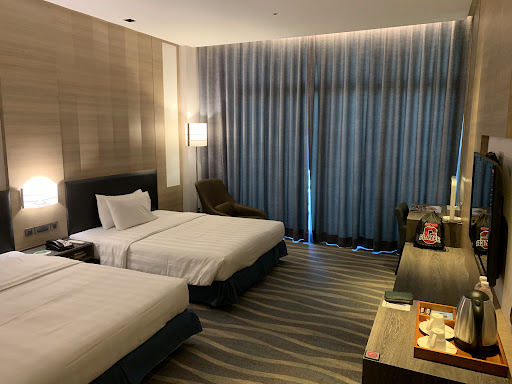 Read moreFirst stay the weekend of October 19th with 2 rooms. Location wise, it’s convenient. There’s a convenience store around the corner, the harbor is within walking distance from the hotel and along the way an art district where you can see art installations.||Our room 513 has 2 double beds that sleeps 4. The room was fine but the complaint I have with this room is that the carpet needs to be cleaned/shampooed. There’s a large spill of what looks to be coffee at the foot of one of the beds. In hindsight I should’ve taken a photo and included it with my review.||Room 522 has 3 double beds that sleeps 6. The shower/bathing room in this room is ridiculously small. There’s no rack to place towels or change of clothing. It was very inconvenient and lacked practicality. ||Our room rate included vouchers for night snack and breakfast. There’s a wide spread of Chinese and western options. For breakfast, those of us that chose Chinese style were happily satisfied but a family member opted for the western and stated that the food was cold. The line for food moved quickly while it was slow for coffee. ||We also dined in the hotel’s seafood restaurant for dinner and had one of their packaged/fixed menus ($3,500 Taiwan dollars). Quantity of food was great but wasn’t unique. ||It appears that the hotel’s biz is primarily from tour groups. It is busy and somewhat crowded. If I were to visit Kaohsiung again, I’d be staying elsewhere that is less busy and less trafficked (just a personal...