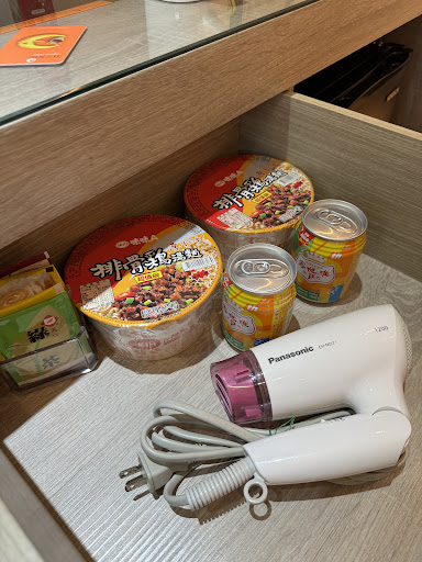 27 March 2024 Wed: Cons = 1) Noisy. Poor noise insulation for window, door & ceiling. A lot of noise. Noisy road outside. Noisy Taiwanese (local) guests at the corridor (they stand there talking). Running footsteps & chair dragging noise from ceiling. Noise insulation gap of air between the 2 panel windows need to be wider (example for CU hotel, there's very big air space like 20cm or more for noise insulation. This Legend hotel only has about 6 cm air gap, so ambulance sirens & speeding cars & motorbikes can still be clearly heard.). 2) Leaking water from under the sink. 3) Fridge not cold enough for keeping milk or yogurt. Just for drinks & cake (but there's shared clean, big fridge in the lounge.) 4) Housekeeping (after check-in) not quite clean. A few long black hair strands under sink & around the room floor & 1 dust clump came out from under the fridge. Windows are not wiped. I wiped away the fingerprint marks & dirt on the inside. Outside windows, hotel needs to hire professionals to clean. 5) Noisy air-con vent near the door. 6) Location is far from Yanchengpu MRT Exit 4 or Exit 1 (no lift, no down escalator & heavy luggage have to be carried up & down the steps. Need to use Exit 2 lift which is further.). Out of the MRT, rough pavements & road make it difficult to wheel the heavy luggage to the hotel. 7) No rain shower but it's Ok. Shower head no adjustable spray but it's Ok. 8) Stuffy ventilation even with air-con on. And air-con takes a while to cool the room. Cold late at night when the air-con blows directly at the desk. 9) Leather-looking chair is cold to sit on. And the height is a bit short compared to the height of the desk. 10) Shower drain loud dripping sound for some 5 or 10 minutes after showering. 11) Painful curb at the front of the room door. 12) No blackout curtains. The blinds can't block out the light in the morning.