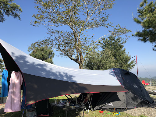 很棒的營地,環山群繞視野開闊,可以遠眺竹山和彰化二水及濁水溪,傍晚可觀賞夕照,夜晚有璀璨夜景,抬頭有滿天星星,在中低海拔有這樣的遼闊景緻的營區不多見,衛浴空間大器乾淨,水壓強穩,有冰箱冷藏冷凍,熱水機(無冷水),沙坑、蹺蹺板、戲水池、搖搖馬,營位環大草皮四周而設置,中間的厚實大草皮留給孩子們奔跑的空間,美麗有氣質的營主闆娘和小闆娘親切熱情,萬聖趴大人小孩都盡興,留下美好的回憶,可惜疫情影響,無法體驗空中瑜伽,留下了下次再訪的機會,距竹山市區近,採買外食皆方便,惟進入營區前的一小段產業道路狹小難以會車,部分路段路面起伏,夜衝時無任何照明能見度...