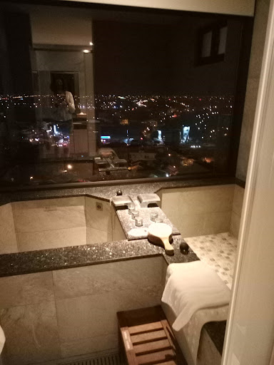 Read moreBig fabulous modern hotspring hotel full of screaming children. If you're looking for a place to let your children scream, this is it. Very close to the Luodong night market and train station. Rooms our spare but pretty. I loved the Terry cloth robe, bed, and towels. All were very soft. There's a great window with a balcony and view of Yilan. The bathroom was spacious and had 4 areas. Sinks, toilet, shower and hot tub. All were separated. The hot spring tub was huge. Up to 180 cm tall can lay down fully. Unfortunately, we found hair and gunk floating on the water after we filled it up so we had to dump the water and start again. What a waste.