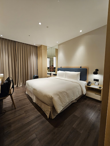 Read moreI like this hotel very much. The rooms are big and newly renovated. Bed is very comfortable. Good that shower room, toilet and wash basin are all located separately so that you and partner can use it without waiting on each other. There're 4 free bottles of water replenished each day during room cleaning and toilet amenities and bedroom slippers were replaced each day. Think the cleaning staff forgot to replace amenities on the last day of our stay but it was ok, we don't need them. The cleaning staff and lady hotel manager were very courteous, greeted us each time they saw us but can't say the same for the reception staff who were very mechanical. Although we received notification that the hotel was undergoing renovation prior to our booking, we're ok with that as we expect to be out during those hours. As it rained some days whilst we were there, we came back early and found it to be quiet and could rest without noise disturbance. There's a Japanese styled (naked) hot spring on the 17th floor with a small pool. I went up to take a look but did not use. Although men & women have their own sections, but there doesn't seem to be much restrictions from accidentally stumbling into the other. Perhaps it wasn't opened yet and no staff was stationed there to make sure that it does not happen. I did not eat at the hotel restaurants. But found the western one on the ground floor very popular, quite full most of the time. There's a Michelin bib restaurant Moon Moon Food where we ate twice. Good food, good service and great prices for that quality. But may have to wait a while during peak hours. As for location, within 10mins walk from both Banqiao and Xinpu stations and plenty of buses and convenience stores just outside the hotel. There're many restaurants around the Xinpu station area. There's also a Mega City Mall nearby. I highly recommend this hotel and...
