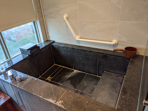 This hotel's positioning is crispy clear. It is a family friendly hotel with an onsen experience and executed well through our 3 day stay there. ||||There is lots of thoughtfulness and little detail that I come appreciate with too many trips under my belt. First, the decor and the onsen experience. When entering, the wooden lattice frame at the front door that covers the glass entrance tells is delivering a subliminal mesaage: earth tones, natural elements, warmth. And I was right, the lobby and the restaurant (loved the wooden curvature and the ceiling) evokes a strong feeling of home or a mom and pop ryokan, but modernized to 21st century standards. The rooms are categorized into the five natural elements. We stayed in the "water room". The earth tone theme continues. This is well laid out room with one tatami room, perfect for kids. The master bedroom took some inspiration from the classic Peninsula quad layout. One side is the walk in closet and a vanity table to put all of our luggage and two sets of well fitted yukata and a special set slippers making a subtle reminder to visit the onsen. The other side is a bathroom with a shower plus tub configuration. For those (like me) who worry about kids slipping in the bathroom, the tiles are antislip and the bathtub doubles up as a mini onsen. One detail that I liked: the glass door sandwiched a piece of ryokan like wallpaper, so you get the wallpaper ambiance without breaking it. =)||||Next onto the onsen. Men and women are separate and after dropping all our clothes, you make a right turn and the space opens up to a shower area and the onsen with earthy tones with clean lines. Felt like the interior designer wanted to give us a positive surprise. The onsen is covered but the skylight lets in plenty of natural light. With two pools, one hot and one cold, user can choose what fits them. The little wooden stool and pail adds an extra later of detail. Also liked the in house Camelia shower gel they provided, not too aromatic but comes with a good smell. ||||Onto the food. We ordered breakfast. Instead of serving it on plastic trays, it is served in a few stacked wooden boxes to mimic the ryokan. Food was delicious, with lots of small dishes and a main dish that changes everyday. We also had lunch in the restaurant where they had an outdoor area that is ideal for chilling in a breezy evening with views of the Tamsui river. I had the shredded black chicken rice, which was delicious. Chicken oil was infused into the rice which makes it extra tasty. ||||While the kids had plenty of fun in the onsen, we also checked out the playroom. This is definitely inspired by a fairy tale town. Three "houses" - one kitchen, one tool house and another fruit seller market anchored the corners with a slide and swing in the middle. It smelled extra woody and I was not sure if it was new or if they had infused the room with some lemongrass oil. My baby girl had lots of fun role playing by selling me vegetables or making me a sandwich. There is also a quiet corner to read books. ||||There is another mini play room in the basement with two arcade games that had all the arcade games in the 80s. Is this for the kids or for the adults? =P I willingly played a few games of Street Fighter to reminisce when Nintendo only had two buttons, not eight.||||With all the great hardware, the software was also up to standards with an extra attentive staff that ran out to grab our luggage when we arrive and always put on smiles when we see them in the morning. ||||Great stay and we hope this newcomer...