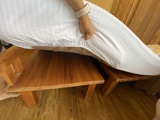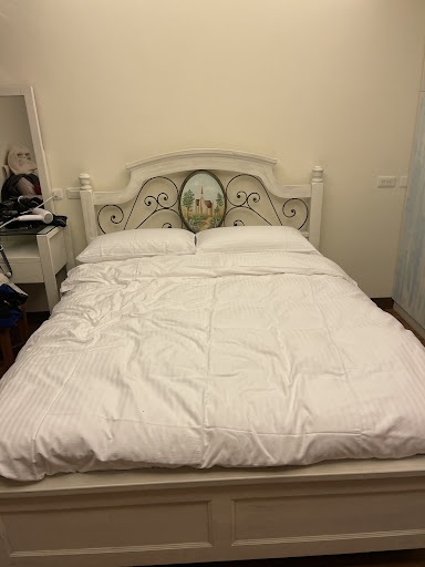 4.關於設備:我對於四人房的定義就是四張單人床或是兩張雙人床,殊不知我們房內的雙人床有一張躺上去就吱吱嘎嘎作響,我與女兒兩人總重絕對不超過80公斤,但我們一翻身就吱吱作響。另一張雙人床更是令人瞋目結舌,居然是兩張沙發椅拼組而成,但與上方床墊尺寸不合,所以睡到床中央會有凹陷感。如果真有這種情況,是否老闆能先述明,我也不會為難。但以這種形式來當做四人房裡的雙人床,商業誠信讓人失望。四人房與雙人房加床是不一樣的吧!