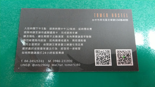 Read moreI stayed at Tomer during my 3 days in Taichung. I had actually booked another hostel but was directed to Tomer and I was glad this switch between the hostels was made (thought it might be risky if I were to be placed in a 'shady' hostel somewhere else) as it was damn near Fengjia NM. It was not difficult finding the hostel as I took a taxi but the roads will be rather crowded when the students at Fengjia Uni end classes. Rem to get the driver to drive through Wenhua Lane 138 to Lane 150 where you'll have to drop at an opening to a row of shophouses. Just walk straight to the end of the shop house to find the check-in shop space. I had arrived earlier on my first day and the recept kindly deposited my bags till the check-in time of 5pm. There are 2 security tokens to be used for the hostel, one to enter the main gates and another to access the doors to your block and finally a key to your room door. The room is cosy and well equiped. Like the other review, I had problems with the heater that took some time to warm up, esp freezing in winter. Overall, the booking is a great deal for me as I need a good bed to rest on after a...