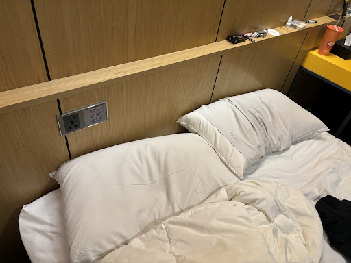 The AC worked really well and it wasn't too noisy, which was great, but it isn't needed overnight since the curtains block the sunlight well, as I mentioned earlier. I wish there was some kind of bedlight so you wouldn't need to light up the entire wall, it felt a bit too bright at nighttime, but it was nice being able to turn off all the lights from the bed using the buttons on the wall.