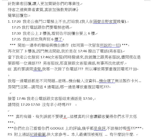 For foreigners let me translate it for you. This hotel is not foreigner friendly. Do NOT consider this hotel as an accommodation choice. It will make your day get worse. There is no one in the first desk to help you check in and even it is the check in time. The system will show you room is still cleaning. The truth is the room isn’t still cleaning but the system has issues. In order to fix the issue you will have to contact the people with Taiwan phone number. HOWEVER, no one will listen to your phone call. Such a panic attack right? Imagine the helpless situation and no one there to help… Also the lift is not working in the morning you will have to request for password but no one tells you that there is a password, or you need a password to access to the lift before 15:00 local time. So… another helpless and disappointing situation AGAIN… You thought oh that’s it? Opsss there is still WIFI issue. The WIFI password is not provided. Interesting right? They said oh we provide WIFI for you, but the password is not provided in the room and you are not able to find the password anywhere. Hence you will have to find people to ask AGAIN. This hotel is very irresponsible for providing service and the insufficient information to the customer. HIGHLY DISAPPOINTED &...