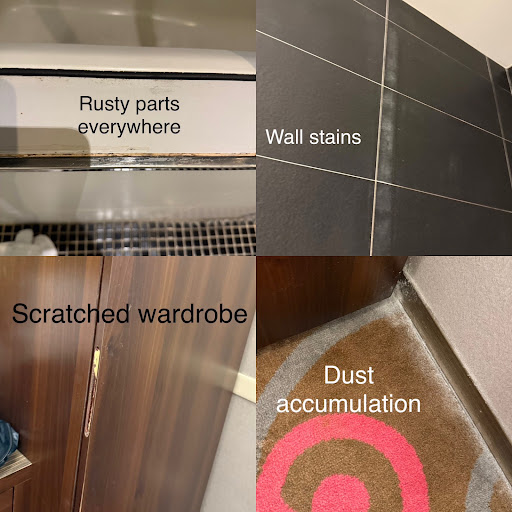 What made me uncomfortable is the layout of the hotel. When you exit the lift, there’s 2 sections for the rooms - left or right. The right side is ok, it looks like normal hotel. However, there are more rooms located towards the left. You will need to go past a very dark alley (especially at night) with lots of fire/exit staircase, walk further down to reach your room. I never expected more rooms over there as it seriously looks like a dead end. As you walk, you can see all the wall paint peeling, it’s really creepy.