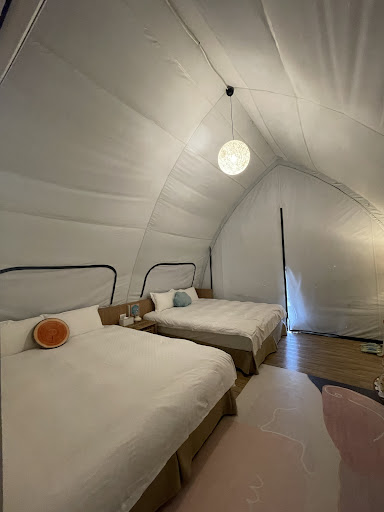 We were a party of 10(6 adults 1 teenager 3 elementary school age kids), and we all agree that Glamping here was an extraordinary experience we ever had. A/C was on before we check-in, spacious rooms with king size beds. They lighted up the bug repellent coil on the porch in the evening, my family had a great sleep without worrying the mosquitoes nor waking up with the heat. Rafting across the lotus lake was exceptional! Zipline was not too fast but long enough for little kids to reach for the sky. Our group lost track of dinner time and they even called to remind us. Too much fun! Too much food!...