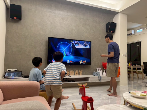 民宿設有電動麻將桌、switch(照片裡的大亂鬥是自己帶的)、戲水池、卡啦OK、電梯,廚房設備也是一應俱全,還有膠囊咖啡機。民宿另有烤肉器材,但這次我們是找代烤店家服務,所以就沒有使用到。另外特別喜歡浴室還有乾燥機,可以保持乾爽,以及從客廳、浴巾毛巾甚至面紙盒都印有民宿的名字,小小細節看到民宿的整體感。