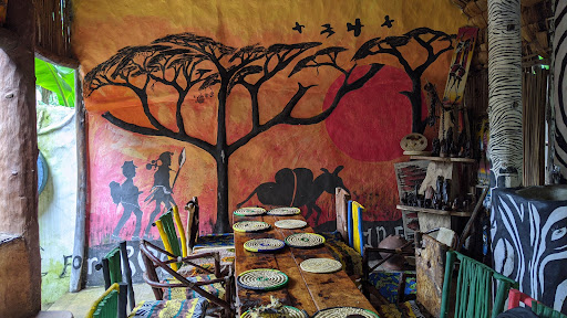 We had met Gerald Ulomi, the owner of Gerald’s Eco Home stay, during a previous trip to Tanzania, and so we decided to book a room at his place and also asked him to organize a 12 day safari that included Arusha National Park, Tarangire, the Serengeti, Lake Manyara, and Lake Eyasi. Gerald is a phenomenal cook and accompanied us during our trip with his friend Jeremiah, the owner of IJUE AFRICA SAFARIS. A detailed review of the safari is can be found on Trip Advisor as well. ||Gerald’s establishment is located about 40 minutes from Kilimanjaro airport, just off the main road to Arusha, in the village of Shangarai amidst banana groves and patches of cornfields. Arusha is 10 minutes away, and two modern hospitals are nearby, just in case one needs medical attention. Gerald’s place is ideally located for spending a night or 2 before heading off to the bush or after returning from a safari. There is also a lot to do and see that is not mentioned in any guidebooks, and it is worth staying a few extra days. The room rates are very affordable, and Gerald’s meals are downright cheap but incredibly delicious: authentic East African cuisine at its finest.||||The term ‘home stay’ doesn’t really describe Gerald’s place. ‘Guesthouses’ would be more appropriate . The facility consists of a series of independent structures - Gerald and his family live in one of them - and each building contains several separate rooms, all with their own bathrooms with hot showers (not a given in Africa), covered verandas and balconies. The buildings are situated within a walled courtyard shaded by large trees, including a huge passion fruit vine, which fruits were served at breakfast together with homegrown bananas, mangoes and watermelons, eggs, bacon, pancakes, fresh toast – the works – and the most delicious coffee that Gerald hand-picked, hand-pealed and hand-roasted over an open fire. ||||The rooms are very attractive, and WIFI is available. We stayed in the ‘honeymoon’ suite with walls and floor made from resin-coated dried banana leaves. Walking barefoot was a real treat. Our bed was big and very comfortable, and we slept like babies. ||||The entire place looks almost like a movie set from Lord of the Rings, a mixture of Hobbit houses and fairy tree dwellings. Everything is organically designed, constructed of local wood and stone and charmingly decorated with hand painted murals and African folk art – the kind of things that cost a small fortune in the US, but are here used for generations as ordinary household objects and furnishings. |||| At breakfast, we could hear the children from a nearby school singing and roosters competing for attention. As most rural households in Africa, Gerald keeps chickens and rabbits and grows most of his own vegetables and herbs. As New Orleanians, we are spoiled when it comes to food, and Gerald’s cooking skills are simply extraordinary. Whether at his place or on safari, he creates the finest multi-course meals on a charcoal grill or an open fire. ||||We always choose the path less traveled and look for local flavor and experience, avoiding Western-style chain hotels. Our stay with Gerald and the subsequent camping safari ranks among the finest experiences we have had and deserves the highest recommendation. We became good friends and tears flowed when we had to say good-bye. Our next visit is already in...