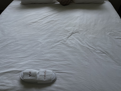 When I entered the room, the sheets were so wrinkled that I thought I would have to ask for a replacement, and the slippers were placed directly on the bed. The towels in the bathroom felt rough and worn, resembling a rag I would use to clean toilets at home. The butler calmly introduced the room, seemingly unaware of my concerns about the situation. After the staff placed my luggage down, one of them lingered by my side, so I immediately handed him two dollars, and he happily left.