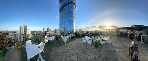 The hotel includes a rooftop bar/lounge/restaurant with 360 degree view. There is also live music or a DJ nightly. There is another restaurant below the rooftop. The lobby has another restaurant where breakfast is available.