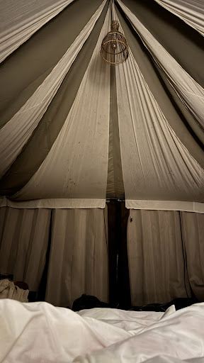 Ausstattung: Das Camp bietet durchgĂ€ngigen Strom, Licht, Warmwasser und WLAN â mehr braucht es nicht. Eine Klimaanlage gibt es nicht, ist aber auch nicht nötig, da die Temperaturen angenehm waren. FĂŒr Sicherheit wĂ€hrend der Nacht ist gesorgt: Zwischen 18:00 Uhr und 07:00 Uhr darf man sich aus SicherheitsgrĂŒnden nicht allein auf dem GelĂ€nde bewegen â jedes Zelt ist daher mit einem Walkie-Talkie ausgestattet, ĂŒber das man die Rezeption zur Abholung kontaktieren kann.