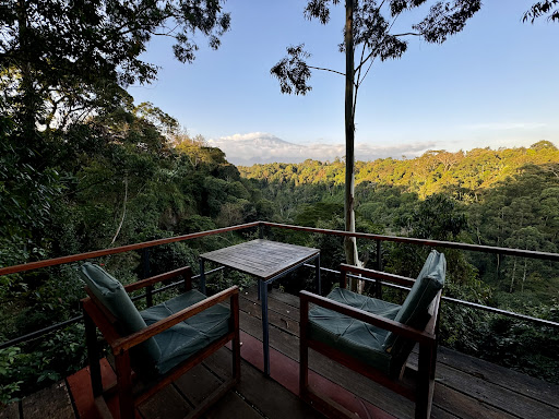 While there, the service was first class. I don't have a single complaint about anyone or anything. From the cook to the groundskeeper, the staff is diligent and friendly. The food was very good and consisted of traditional Tanzanian cuisines using locally grown and produced food. There is an observation platform on the far end of the grounds that provide not only a lovely outdoor social setting, but breath taking views of the forest and of Mount Kilimanjaro itself.