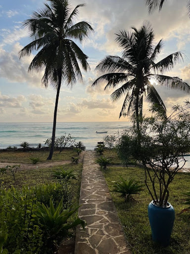After an adventurous and hectic safari in Tanzania we headed to Zanzibar. Our family had done a fair amount of surfing on the internet before we chose & booked Michamvi Beach House. |I had requested for an airport pick up. An hour and twenty minute drive later as we wound our way on a narrow dirt road through a local village, we kind of held our breath wondering what we were in for.||But the moment we stepped in through the blue gate it was exactly as shown in the pictures. A large airy, whitewashed, huge Zanzibari house with a thatched roof. 4 bedrooms with ensuite bathrooms, a huge living room with wifi. A flight upstairs was a family area, sofas, board games, books, a dining table and great views of the ocean. In fact there were three areas where we could choose to have our meals. The deck had a round dining table where we would have breakfast the choice of which was ordered the night previous. At the side, a few steps from the house, was a large beautifully decorated thatched sit- out/lounge which was where we chose to have our special Xmas dinner.|It was plain to see that the garden was well maintained, a covered swing and a big attraction was the large clean pool with coloured lighting at night. A stone tiled path led us to the edge of the property…three steps and we were in the ocean at high tide. At low tide we could choose to walk on the white sand beach.|The location was perfect, away from touristy crowds, walking distance from the iconic restaurant The Rock. The privacy and spaciousness of the property was awesome.|The Manager, Zander was a gracious host who walked us through the property and showed us all the amenities including a gym on the top floor. Being a keen fisherman we had the good fortune to taste different catch each day.|Breakfast and one meal was included in the tariff but the quantities were large so the chef would muster up enough for a delicious salad with the left overs. We told Richard that we were interested in the local cuisine and spices so he cooked up the most tasty fish dishes. Often helped by Pauline the 2nd chef. Masho the gardener was the early riser who would start gardening and cleaning the pool at the crack of dawn! Last but not least was the soft spoken, hard working housemaid and server - Naomi. Always eager to help and constantly ensuring that the villa was clean and tidy, the beds made neatly and that there was enough linen, especially beach towels.|One could ask Naomi to arrange for a massage, or to send for Ali the driver to take us to the nearby town Paje. Captain Octopus, yes that was his name, took us snorkelling, to a sand bank, a mangrove and to an area where we saw the most spectacular sunset.|What a lovely vacation! Thank you Zander and staff for making us feel so at home in your lovely property....