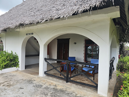 Read moreAlso. Ich habe 3 Sterne für das Hotel gegeben, was meiner Meinung nach gar nicht so schlecht ist. Und das Hotel selbst ist sehr gut - Lage am Strand direkt ist genial! Lage des Hotels insgesamt - sehr entfernt von allen möglichen Aktivitäten. Nicht einmal ein kleiner Laden in der Nähe. Ja, okay, am langen Strand paar kleine Restaurants und winzigen Souvenir-Scheunen. Das war's. Geschweige denn was ähnliches wie Bushaltestelle. Selbst wenn... ich würde mich nie im Leben in ein Dala-Dala freiwillig hinsetzen. Das Hotel besteht aus mehreren Bungalows, 1- und 2-Familien-Gebäude. Insgesamt 26 Wohneinheiten. Das wird platziert in einem wunderschönen Garten, sowas habe ich kaum gesehen! Sehr liebevoll gepflegt, sehr schön, duftend nach Frangipani-Blümen. Pool: nicht groß, aber gepflegt, sauber, mit dem klaren Wasser. Bei der Ebbe haben wir den Pool jeden Tag benutzt. Restaurant: im afrikanischen Stil, authentisch, offen. Strohwände und Strohdach, typisch leicht für das tropische Land. Nur bei dem starken Regen ein bisschen Pech, weil das Regenwasser durch läuft. Um die Sauberkeit wird gekümmert, meistens erfolgreich. Nur gegen fliegende Gäste wie Bienen und Wespen kann man wenig machen, die sind immer da. Aber das Personal bemüht sich um die Hygiene, die Speisen werden mit Frischhaltefolie bedeckt. Fliegen gibt es auch, aber in ganz kleinen Mengen, die sind nicht wirklich eindringlich. Zimmer: Bungalow 15. Hat mir gut gefallen. Die Aufteilung des Zimmers ist sehr bequem, insbesondere etwas separater Schlafbereich, getrennt vom Wohnereich durch ein Moskito-Vorhang, sah edel aus! Wie in alten Filmen über Kolonialzeiten! Bett sehr bequem, auf jeden Fall habe ich alle Urlaubsnächte gut geschlafen. Ein Bereich mit Sutzgelegenheiten, 2 Sessel+Couchtisch. Kein Kleiderschrank, was kein Wunder bei dem Klima ist, nur offene Regale, aber mit genug Platz. Kleiderbügel-Stange, wenig Kleiderbügel, 8 Stück. Kühlschrank klein, was nicht das Problem ist. Problem ist, dass er eindringlich laut ist, so dass wir ihn nach 2 Stunden ausgeschaltet haben. Haben wir aber abgesehen davon nichts vom Gebrauch. Kein TV-Gerät vorhanden. Das hat uns nicht im geringsten gestört. Am Eingang rechts befindet sich eine kleine Kommode, darüber ein Wandspiegel. Vor dem Bungalow befindet sich große Terrase mit Sitzecke, ein Highlight! Bad: renovierungsbedürftig! Zwar gut geräumig, aber echt - alles so alt! Duschvorhang muss dringend gewechselt werden. Dürftig ausgestattet, wenige Ablageflächen, gut so, dass wir einen großen Kulturbeutel immer mitschleppen. Die Dusch- und Handtücher wurden jeden Tag fleißig gewechselt, haben aber einen etwas unangenehmen komischen Geruch. Strand: das eigene Hotelstrand, wird jeden Tag fleißig gepflegt, nicht viele Liegen, was verständlich ist, weil nicht viele Gäste. Nur ein einziger Sonnenschirm aus landestypischen Materialien, man braucht die aber kaum, weil am Strand einege Palmen und Casuarinen-Bäume genug Schatten spendieren. Es gibt sogar eine Strandbar, kann aber nicht beurteilen, war nicht da. Essen: eigentlich lecker. Büffet-Form. Nicht einmal Magenprobleme. Im Großen und Ganzen einfaches Essen. Frühstück immer gleich - Joghurt in kleinen Bechern, Haferbrei, Bohnen mit Sauce, Kartoffeln, geschnittene geschmorte Pilze aus Konserven, Würstchen(schmecken nach Pappe), hartgekochte Eier oder live Cooking (Omelette, Spiegeleier). 1 Sorte Marmelade, Butter etwas spärlich, 1 Sorte Gebäck(Muffins), kleine Croissants, Pfannkuchen, Weißbrot. Kaffee geht so, wenigstens frisch gekocht, aus der Isolierkanne, so wie heiße Milch und heißes Wasser für den Tee. Abendessen: ein bisschen Abwechslung ist dabei. Suppe, alle waren lecker, nur Cremesuppen, 1 Mal Fischsuppe. 2-3 Beilagen, geschmortes Rindfleisch oder Hänchenfleisch, Fleischbällchen, geschmorter Fisch, live Cooking - Oktopusse, Thunfisch, Königfisch, Hänchen, 1 Sorte pro Abend. Salat auch in einer Ausführung. Desserts - Früchte( Ananas, Papaya, Jackfruit, Wassermelone, Passionsfrucht, Mango) alkes sehr lecker! Kuchen, 1-2 Sorten. Fazit: mit...