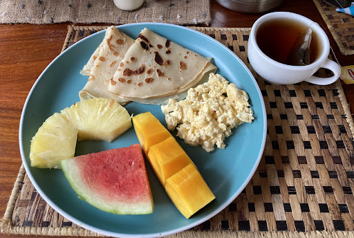 Zum Frühstück gab es jeden Tag standardmäßig frische Früchte, einen frischen Fruchtsaft (immer unterschiedlich), Kaffee und Tee. Zusätzlich kann man aus einer Karte noch was auswählen (Rührei, spanisches Omlett, Pancakes, …). Ich fand das Frühstück sehr lecker und es wurde auch immer mit einem Lachen serviert – ala „Ein Lachen am Morgen, vertreibt Kummer und Sorgen“. Man kann in der Lodge auch Mittag- und Abendessen, was ich auch absolut empfehlen kann.
