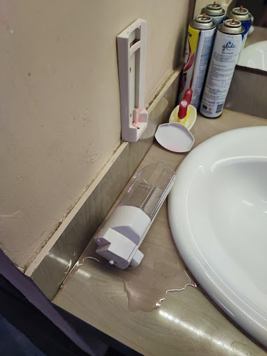 I have no clue how this place has such high ratings. The hostel is entirely run down, the pictures are outdated and probably from before covid, and the place has not been renovated in years. The rooms are not clean, spots on the walls, dead bugs on the ceiling and in the corners, old bedding that has turned yellow over time, so it's not even white. The desk in the room is quite high on the wall and the chair is small so you can't sit and work in the room, not that you would be able to anyways because the WiFi is so terrible. They have many different ones you can try to log on to, but none of them work. The toilets are gross. When I arrived two of them were clogged, and not with toilet paper. There was no soap in the dispenser and no paper towels. I went to the reception to inform them, and the woman I was speaking to acted like I was being completely unreasonable for asking for soap for my hands. She then informed me that they don't provide paper towels to dry your hands after washing, even though they have a dispenser for it. This is probably because they don't provide towels either and they don't want guests to use paper towels instead. So they settled the problem by being unhygienic instead. I came back later to see that someone had tried, and failed, at filling up the soap dispenser, and instead of cleaning they had left the soap dispenser on the counter with soap all around it dripping on the floor. As in the picture. There were dirty dishes in front of my neighbours door, which attracted insects, not great. The showers were gross as well, since there are no slippers to borrow, people take their shoes from outside and drag them around the bathroom and showers so there's dirt on the floor. The light in the bathroom doesn't work right, the entire place smells strange and none of the common areas are kept clean. The location is about 13 minutes from the metro, terribly connected and in a bad neighborhood. It's outside of the main part of Bangkok and the location is generally bad for food, sightseeing, amenities and general comfort. They don't provide water, towels, or any other amenities at all, which is the least they could do for those...