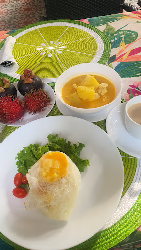 We stayed here for 3 nights and we had such a lovely, homely stay, and we couldn’t recommend this place enough. The staff are so caring and kind and they really looked after us. We stayed in a really nice room on the top floor (201) with our own bathroom - some rooms had a shared bathroom but we preferred to have our own and we paid just a small bit more to have this option. ||Outside our room there was a really nice outdoor area with shade and seating and the place is so nicely maintained and we liked the no shoe policy. A small point was that there wasn’t anywhere to store stuff and so we didn’t unpack but this wasn’t an issue we we were only here for 3 nights. ||We sadly missed breakfast on two of the mornings that we stayed as we had very early morning tours, but on the first morning of our stay we had a traditional Thai breakfast - Tom kha Kai which was a coconut soup with chicken, lemongrass, galangal and chilli which was absolutely delicious and they gave us some fresh fruit and coffee. The guesthouse is in an alleyway in a residential area and it felt authentic with small local shops and restaurants that we wish we had had more time to visit, and there were chickens and cats wandering around the street and we loved this. The room was quiet and comfortable and we slept really well and it felt safe. It is quite centrally located and a great base for exploring Bangkok. It felt like home from home and wish we had more time to enjoy this quiet oasis. A really...