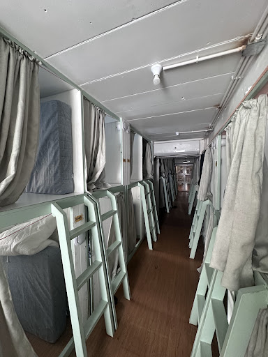 This place is under construction and Looks Somewhat ghetto and scary upon arrival and entry exclamation point There are no signs and I had to have a neighbor across the street direct me to And outside refrigerator that is the secret entrance to this place Period You must open a refrigerator door and squeeze in through one side with your bags to enter And then go up three fights of stairs to find a makeshift front desk Where everything is under heavy construction. The beds are twin beds in a very tight compartment Just big enough to store your bags inside As there is no place to lock up a large bag and no bag storage available for anyone! If you like leaving your bags alone unattended then this place is for you. When I was finally ready for a shower I went to the bathroom to check it out first glad I did because three women came out all saying there was no hot water in their shower, no water at all in fact. The front desk got on it and said they would fix it I went back to my little cubby waited a half hour eventually came back out and they said it was fixed Well I went to the bathroom and the toilets of two Had no water and both were full of poop! I let the front desk know about that and they got on it right away And of the two days I stayed there I had to Ask for toilet paper several times And the shower did eventually get hot But flow is inconsistent which seems to be typical there is a tiny balcony where you can barely fit with a chair and smoke whatever you want. I'm sure once they get the construction done the bathrooms repaired and replaced And The upgrades done it will be a good location But until then I cannot...