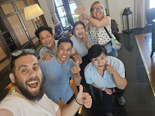 The hotel places a heavy emphasis on delivering outstanding and personalized service. Though the building is smaller, it feels mighty, featuring a restaurant with a large menu, an on-site washer and dryer, and a great outdoor seating area. We were on a longer trip and came here specifically to relax and stay on the property for our entire visit. We had a very relaxing and laid-back time by the pool, where we enjoyed the buffet and attentive service. Visiting during the low season often made us feel like we had a private riverside resort to ourselves. It's amazing value to access this level of quality. The other guests were well-dressed and international, and the property's layout provided plenty of opportunities to chat and meet others.