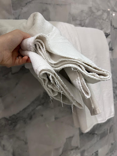 First, the basic amenities were either missing or of poor quality. There was no iron available, and the room was far from clean. There was hair and dandruff on the red sofa, mold and algae in the toilet corners, and a stained bedsheet. The towels weren't much different from rags , with the edges tattered and torn. The slippers were filthy with stains, and the carpet had not been vacuumed at all. When one of the front desk staff requested room service to clean our room with a vacuum, the cleaner actually argued with her in front of us and was unwilling to do it.