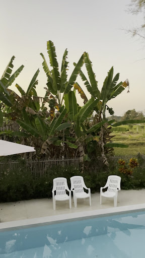 Read moreTout avait pourtant mal commencé 😏, la navette qui était censée venir me récupéré à l'aéroport n'était pas là...je me suis donc rendu en taxi à l'hôtel. Sur place, très bon accueil, par après arrivée du mari qui me montre bien une pancarte avec mon nom, il semblerait que nous n'attendions pas au même endroit à l'aéroport, ce n'est pas grave, l'hôtel me conduira au centre ville gratuitement lors du check out pour compenser. Cela dit, pour les futurs voyageurs, faites vous bien préciser l'endroit où l'on vous attendra.||L'endroit est agréable, grand jardin, petite réception avec banc en bois. De suite le personnel me prépare de quoi déjeuner, super sympa. Les cabanes sont en pailles tressées, pas très grandes, attention si vous êtes deux, ça peut coincer avec deux valises...lit standard, moustiquaire, WC et douche. Le tout donnant sur la piscine extérieure. Le logement en lui même est assez rustique, j'ai toutefois passé des nuits calmes, car j'étais seul aussi il faut dire dans l'établissement durant 2 nuits sur 3 et seul à voyager donc plus de place...quelques aboiements de chien par ci par là...il n'y a pas vraiment d'insonorisation, du coup, il faut espérer avoir un voisinage calme. La piscine est agréable, mais froide. La vue est dégagée au loin, l'endroit est vraiment agréable. La connexion Wi-Fi est correct. Pour le matin, déjeuner simpliste. Pain, confiture, petit jus d'orange, Yahourt. Mais n'hésitez pas à demander autre chose, les hôtes sont charmants. Le vrai plus, c'est la possibilité d'emprunter le scooter qui est sur place gratuitement. Dans les alentours, pas grand chose, une salle de gym en face, quelques vendeurs de tout et de rien... Il faut aller plus loin pour trouver un restaurant convenable comme le Aroy Garden à 5min en scooter. Le tarif est trop chère, 87euros pour 3 nuits soit 30 euros par nuitée... Cela dit si l'on retire l'utilisation du scooter 7euros par jour qui est offert cela reviendrait donc à 22-23euros qui est finalement réaliste bien qu'encore un peu chère pour la prestation proposée,et les équipements à disposition. J'ai connu pire, j'ai connu mieux... Mais je reviendrais...
