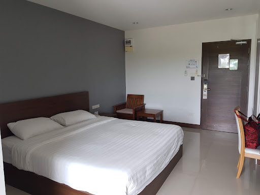 Making our way to the eastern seaboard, we found ourselves getting tired. Not wanting to risk driving another 3 hours, decided to find something easy. Found this online and booked...not expecting too much (and not needing much - just a clean bed), we got an actual apartment in a new building, new furniture, a bunch of cable channels and helpful staff for less than 30 dollars! ||Its located around the corner from a Tesco Fresh and 7-11. There's also a bunch of food stalls. We got fed for pretty cheap and slept really well in our king bed. The matress is Asian firm (fyi). I use about the same at home, so bedding gets full marks from me, but for those who prefer soft bedding, be aware, its on the firm side. We had a peek-a-boo of the Gulf from our service balcony. Some of the other rooms have better views. Best of all, there are a bunch of cable channels, including several english language movie and tv shows. Something that can be hard to find outside Bangkok.||In the AM, we headed by car 5 minutes down to one of the best seafood fresh markets in Thailand where we bought fresh shrimp and crab to cook when we got to our destination.||In short: quality lodging in an interesting spot for a reasonable price. We'll probably do this...