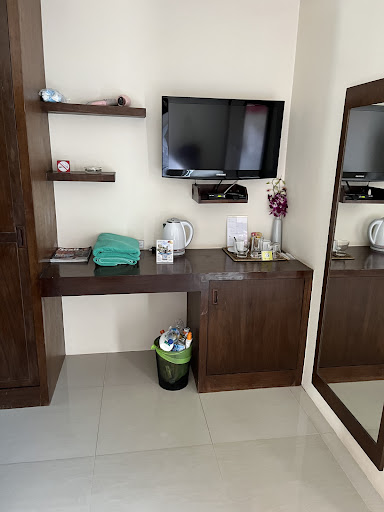Read moreI stayed 2 nights at this hotel in a "deluxe double" room on the 3rd floor (#304). First of all, it's kind of an odd set-up in which the reception desk is actually in the back corner of the Sync Coffee Bar, located down a small alley off the street. The room was very clean and comfortable, with a large bed, small wardrobe with a safe box, fridge, kettle, tiny TV (but with a very good selection of channels), wet style bathroom, and a small balcony with a table and chairs. No view except of the neighbor's roof, but lots of natural light in this room. Lower floors may not have this luxury. What was lacking though, was a desk of any kind. There was a little bit of space next to the fridge, but I wouldn't call this a desk, nor was there a chair, so if you need to work on your laptop you may need to go to the cafe downstairs. Also there was an insufficient number of power points in the room - there was only one. Check-in was easy, although I may have timed it just right by good luck. It seemed to me that the reception desk was not always manned, and if the cafe is closed it may be difficult to find someone to help you. Location is excellent, a very short walk to the beach and numerous restaurants and bars. Being set back off the road the way it is, the room was super quiet at night, with no street noise at all. I would return to this hotel based on the location and cleanliness of the room, but with the understanding that the facilities...