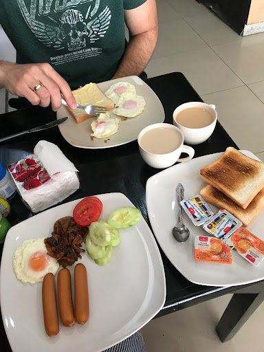 Жить вполне можно. Не для придирчивых. Номера большие. Тараканов и прочей живности нет. Мебель не новая. У четных номеров балкон выходит на внутренний двор, с видом на соседний бассейн, на который можно ходить, т.к. у отеля бассейна нет. Хотя бы в ванной не мешало бы сделать косметический ремонт. Фена нет. Кондиционер в номере работал хорошо, но наружный блок ооочень шумный, сначала ночью даже просыпались от звуков которые он издавал. Подушки большие и мега жесткие. Уборка есть, но поверхностная, пыль не протирают и вокруг раковины не моют, уборка не каждый день, происходит как-то выборочно по времени и номерам, могут убрать через день или два. Света в номере мало, при закрытых шторах темно. Шторы открывать будете редко, напротив отель и вы можете наблюдать за постояльцами соседнего отеля, а они на вами, поэтому шторы почти все время закрыты. Часто были перебои с водой, минимум по 2 раза в день и дляться несколько часов, а к концу пребывания и по 5 раз в день были перебои с водой. Просыпаешься утром - нет воды, приходишь с завтрака - нет воды, приходишь вечером с пляжа - нет воды, приходишь с ужина - нет воды, ложишься спать - нет воды. Конечно вода появляется в течение пары часов, но когда хочешь в туалет, ждать пару часов - мучительное занятие. В общем к 10 дню пребывания проблемы с водой уже надоели. Полотенца в отеле повидали многое. Попадаются дырявые и в пятнах как-будто от отбеливателя. Пляжные полотенца выдают на ресепшене, каждый день свежее, но на вид такие же уставшие как и в номере, иногда стыдно с такими идти на пляж. А вот постель за 11 ночей нам ни разу не поменяли. Завтраки скромные с 7 до 10. Каждый день жареные яйца, куриные сосиски, огурцы, помидоры, лист салата, арбуз. Чередуются рис, лапша. Чай, кофе, молоко, апельсиновый сок, хлеб/тосты, масло и апельсиновый джем. Через неделю поднадоедает однообразие. Если подошли и что-то закончилось, можно попросить и вынесут еще. Удобное расположение, хоть и вторая линия. До пляжа Ката идти 5-7 минут, можно вдоль речки вонючки (указатель и вход по левую сторону автобусной остановки), можно по дороге 10 мин, так интереснее. До пляжа Карон идти 15-20 минут, до Ката Ной минут 35 спокойным шагом. Мы ходили на Карон, так как там нет лодок, водных байков, спитботов, соответственно нет бензина в воде. Рядом, в минутной доступности ночной рынок, где можно поесть, магазины 7/11 почти на каждом шагу. Если пойти в противоположную сторону от пляжа, то через 2 минуты еще один рынок, там более цивильней + живая музыка, два тайца исполняют хиты русского рока, но цены выше. Но есть обалденные шейки, без сахара, воды и льда, миксы полностью из фруктов. Итог: Когда у тебя не лакшери отель, тебе не хочется чилить в нем весь день, и ты идешь искать приключения. Сэкономив на жилье, можно позволить себе больше...