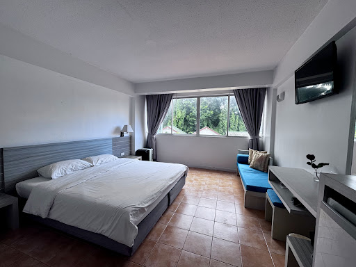 Пишу отзыв находясь в отеле. Комната находится на первом этаже. Итак, начнём с того что заселили нас быстро потому что мы приехали поздней ночью. Первое что удивило - это отсутствие второй карточки для номера. Я читала отзывы про этот отель но люди почему-то не писали про это. Хотя это ужасно неудобно. Я много путешествую посетила много отелей сама работала в отеле, но данную систему я вижу впервые. Например моя подруга любит дольше времени проводить на пляже, а я люблю гулять по городу. Или она всегда возвращается поздно ночью и мне приходится просыпаться и открывать ей дверь. В коридоре постоянно слышим стуки соседей в двери таких же как и мы. Стоимость за путёвку мы оплатили прилично и я считаю что вторая карточка должна быть. За это я ставлю двойку. В итоге получается не отдых а какое-то открывание дверей, то она мне ночью открывает просыпается, то я ей или даже днём кому-то приходится ждать на ресепшене долгое время пока другой с карточкой вернётся. Это позор товарищи! Питание. Завтраки однообразные. Максимум меня хватило сходить раза три покушать. Тертая морковка, помидоры черри, листья салата, нарезанный огурец, нарезанные ананасы и арбуз. Горячая зона. Яичница, омлет, какая-то лапша, какое-то непонятное мясо опять с овощами перемешанное и рисовая каша. Есть хлеб его можно пожарить как тост и добавить на него либо апельсиновый либо клубничный джем. По напиткам. Два вида сока - гуава и ананас. Кофе просто отвратительный, видно туда высыпают прям растворимый порошок тк кофе горький даже молоко не спасало. Чай обычный чёрный. На этом всё, если вы приезжайте сюда на 10 дней или дольше эти завтраки смотреть уже невозможно. Номер. Кондиционер работает очень шумно как будто это какой-то двигатель. У нас окна выходят на бар но здесь двойные окна поэтому слышимость есть но не настолько большая. Вся музыка прекращается около часа ночи. Слышимость в отеле удачная. Например лёжа в комнате можно слышать как твой сосед принимает душ и прочие звуки. Постельное белье по приезду было в желтых пятнах. Полотенца которые выдавались я использовала только для тела для лица я брала свои плюс я брала свою наволочку потому что я достаточно брезгливый человек. Занавески в номере видно не стирали веками к ним страшно до касаться они все заляпанные и сальные после них я всегда ходила мыть руки. Когда спускаешь туалет, бачок ещё минут 10 будет набираться. Из-за этого ночью мы не спускаем потому что будет очень сложно уснуть из-за громкого звука. Душевой кабины нет следовательно когда вы принимаете душ во что туалет зона где раковина на минуточку где стоят ваши средства личной гигиены лежат полотенца или же косметика все будет просто мокрое. Фена в номере нет. Хорошо что я почувствовала и взяла свой. Матрасы удобные подушки тоже. Вода пополняется каждый день также туалетная бумага какой-то шампунь и гель для душа. Шкафа в номере нет я про это читала и была к этому готова . Вещи сушу на телевизоре на двух стульях. Почжные полотенца под роспись (доисторический век). Если не сдашь после 20-21 будет штраф. Персонал. Персоналу ставлю твёрдую пятёрку. Добрые, улыбчивые всегда спросят как дела. Расположение удачное. Очень много магазинов кафешек и ресторанов, рядом находится рынок который приезжает по вторникам и пятницам. Вайфай в вечернее время - еще грузит. Вода из под крана 