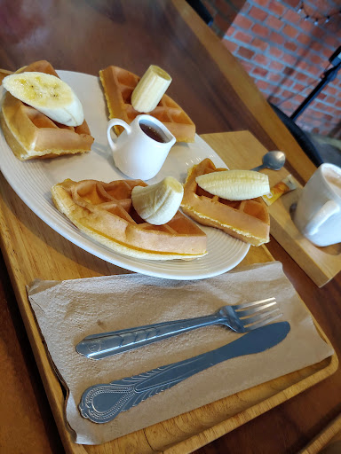 Read moreWe didn't stay in the hostel, have only experienced the cafe side but we love it! Fast WiFi, good food, good coffee! We enjoyed dinner and also breakfast at the cafe. Waffles with ice cream for my husband's dinner and I got the stir fried chicken with basil and fried egg - both were delicious. The Thai iced tea frappe was also nice - not super sweet. For breakfast, I got the American style breakfast and he got the waffles set. Mocha and iced latte were both really nice. Staff are very sweet. They also offer laundry services and we thought their prices were very reasonable and...
