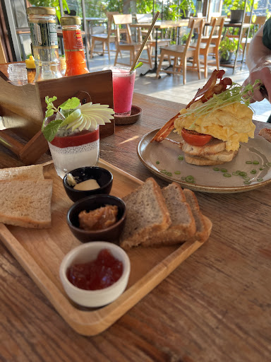 The good: location is close to walking street but not adjacent, so quiet enough and yet easy to get to and from. However, no views or anything from the room. Itâs a cute homestay-style location decorated in tropical plants everywhere. breakfast is a-la-carte, and it is beautiful! Very delicious, filling, and aesthetic, with a tropical juice of the day. However, any extra order will cost you extra. We tried to get some extra bacon along with a dish that didnât have bacon, and it costed 60B for two pieces, felt a bit ridiculous.