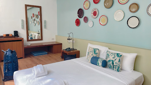 Read moreAqua Beads located in a quiet area of the island. The hotel is clean, the staff friendly and always smiling. The beach is small and almost private. We had room 102 right on the beach which has a great view. The breakfast was good, choice of eggs, toast and fruit. Rooms have tea and coffee and a fridge. The pool area is good if that’s your thing. The pool is about 12 metres long. If you like swimming in the sea be warned. There are sea urchins when the tide is out and as I found if you do long swims also sea lice. I noticed getting little stings as I swam but didn’t think anything of it. I then came out in little red lumps that we thought were mosquito bites and it wasn’t until after a fair few days that we worked out what it was. There are also mosquitoes around at night so you’ll need anti mosquito spray. A few restaurants around the hotel which are okay, a bar that does decent cocktails about a ten minute walk away and a slightly more up market restaurant at the Ban Ploy hotel. Very few guests at the hotel so we more or less had the place to ourselves. You can hire scooters very easily and they’re cheap if you want to...