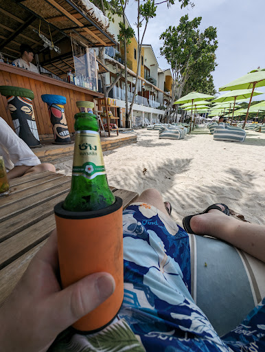 Beach bar is a nice touch, with bean bags and nice music tunes, but food takes forever to come out - waited over an hour for some meals to arrive. Service is also lacking and very slow. Also rather higher priced to some other beach bar/restaurants. And depending on the chef of the day - food quality will differ from one day to the next.